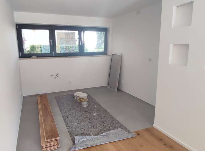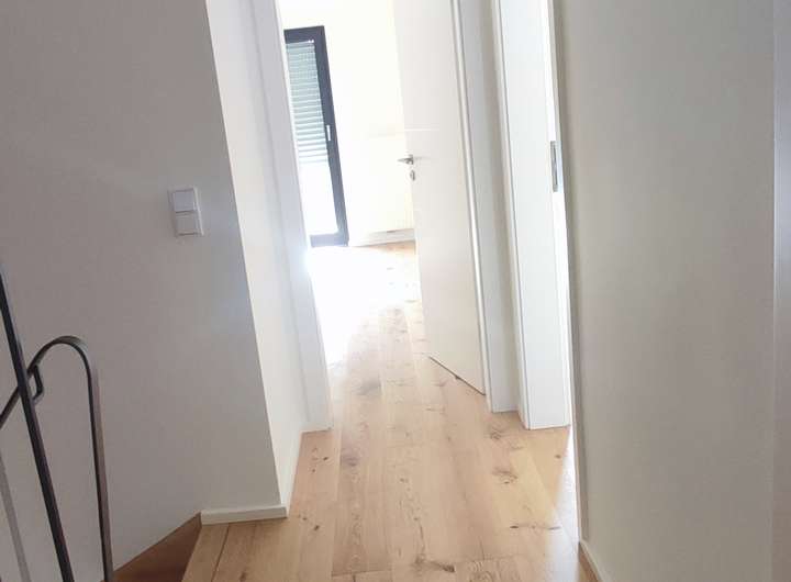 neue Elektrik, teilweise elektrische Außenrollos. Pakett- u. Fließenböden, Holztreppe, Bad neu mit WC. Dusche mit WC.