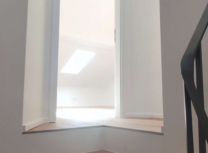 DG 1 Raum Studio ca. 28qm Dachschräge zur Gartenseite mit 2 Dachflächenfenster, seperater Raum mit Duche/WC, Waschbecken ca. 6qm und Dachflächenfenster.