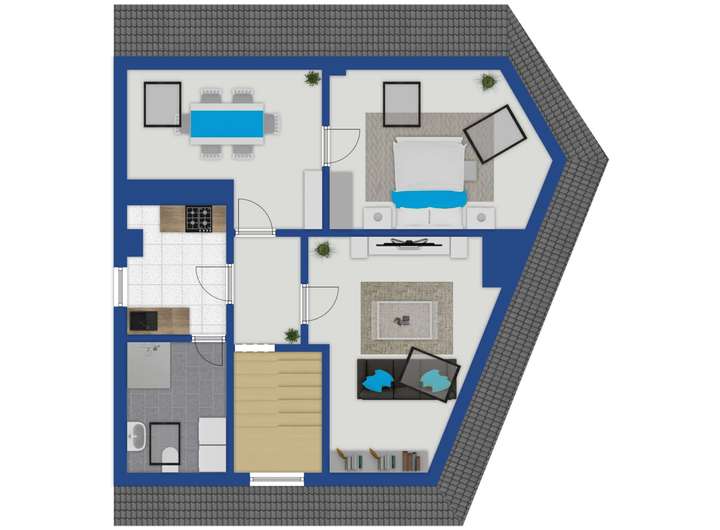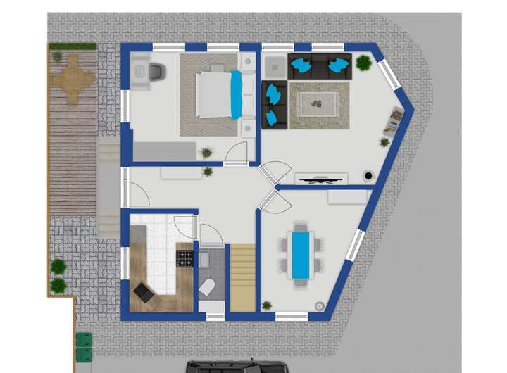 Ob offenes Familienwohnkonzept oder zwei getrennte Wohneinheiten – die Struktur bietet vielfältige Gestaltungsmöglichkeiten.