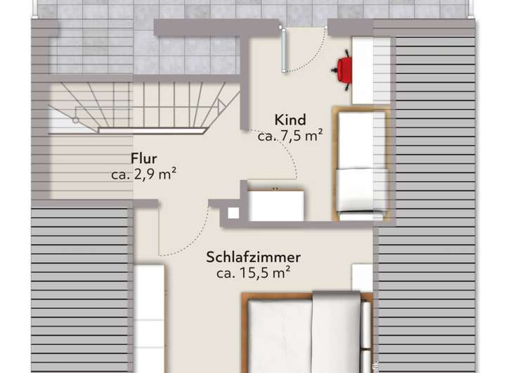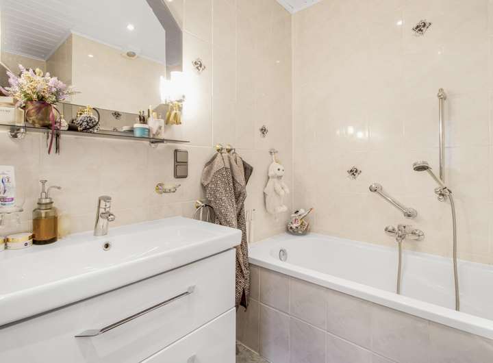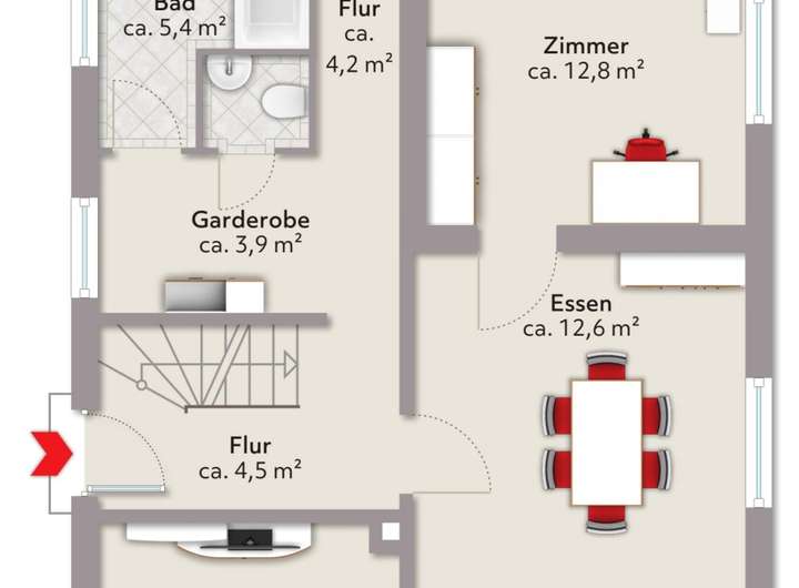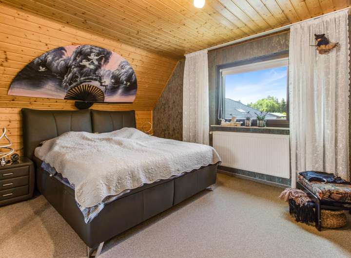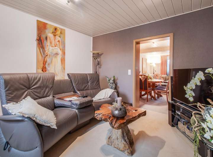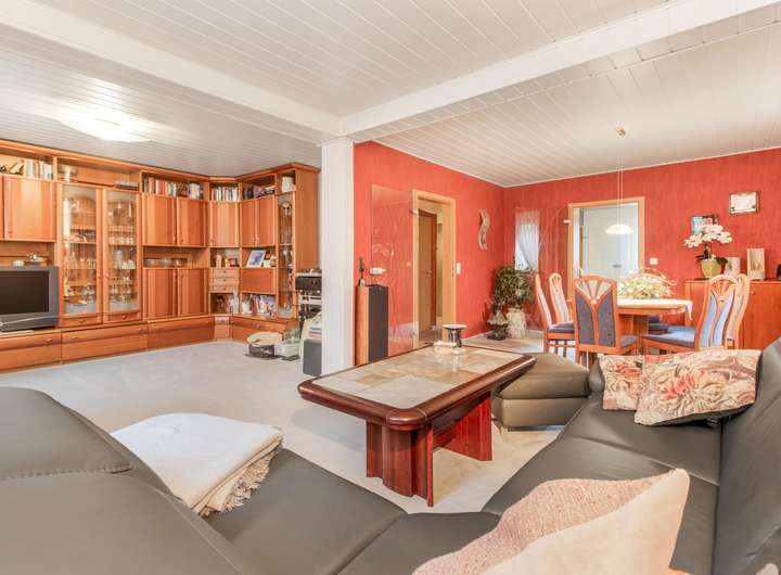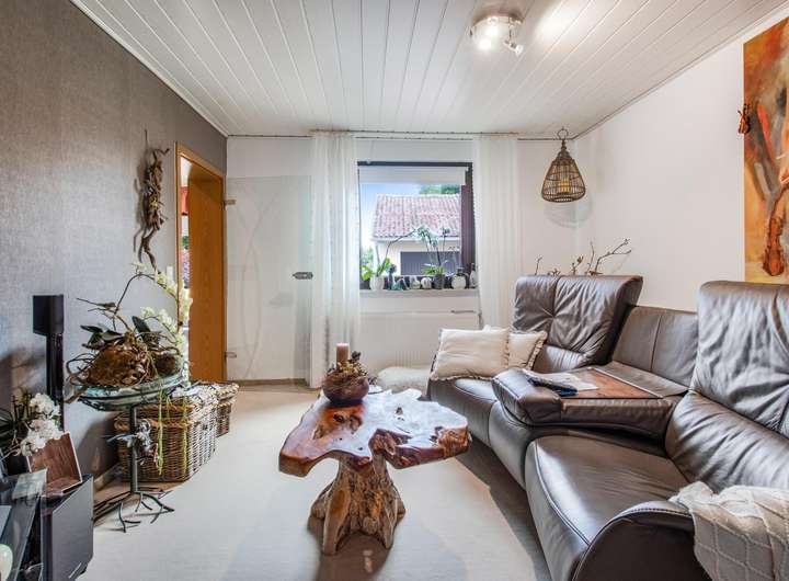 Eine Immobilie, die sowohl technisch als auch energetisch gut abschneidet und direkt bezugsfertig ist findet man aktuell sehr selten daher ist diese Einfamilienhaus ein wahres Juwel. Die knapp 110 m² Wohnfläche sind aktuell ideal für die Nutzung von zwei Personen ausgelegt. Der Grundriss kann allerdings mit wenig Aufwand verwändet werden. Im Erdgeschoss befindet sich ein großes und offenes Wohnzimmer mit angrenzendem Esszimmer, einer Küche sowie dem Bad und dem Gäste WC. Sowohl das Esszimmer als auch das Wohnzimmer könnten wieder verkleinert werden, um ein weiteres Schlafzimmer zu erhalten. Das Dachgeschoss verfügt über ein großes Schlafzimmer sowie ein Gästezimmer mit direktem Zugang zu der traumhaften Dachterrasse mit Blick ins Grüne.