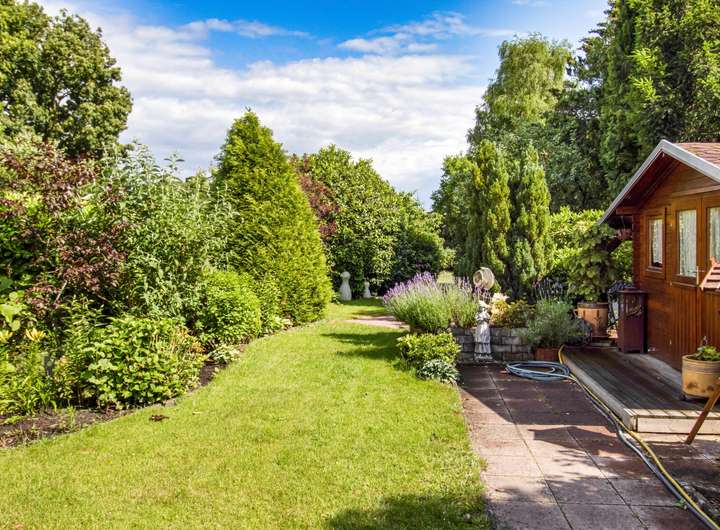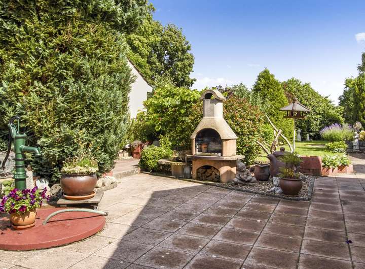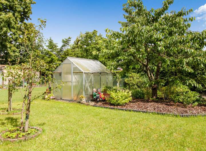 Der traumhaft angelegte Garten ist perfekt durchdacht in jedem etwas zu bieten: ruhige Sonnenplätze, schattige Sitzecken, die Poolecke sowie ein ganzer Bereich für Gemüse und Obst mit passendem Gewächshaus.