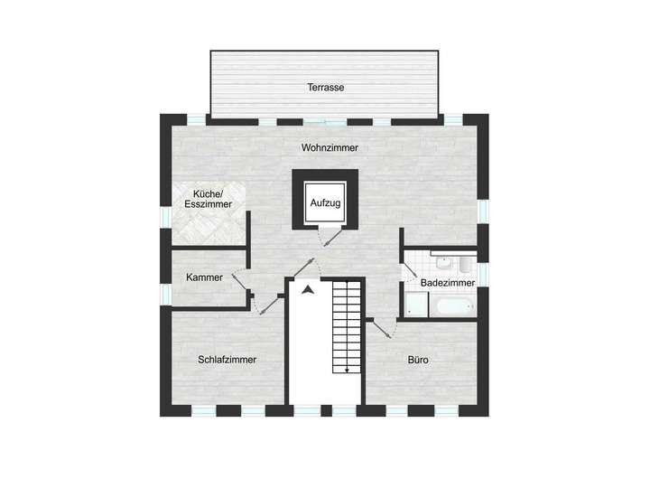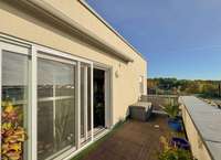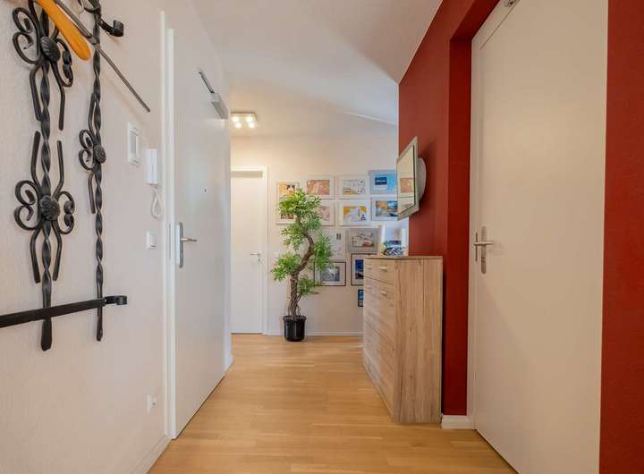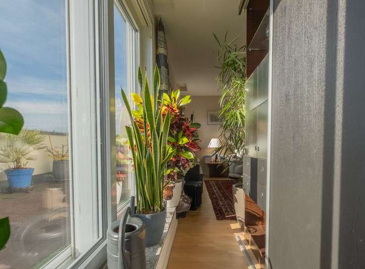 Ein besonderes Highlight ist ein Aufzug, der direkt in den offenen Flur der Attikawohnung führt. Alternativ gibt es auch einen Eingang über das Treppenhaus.