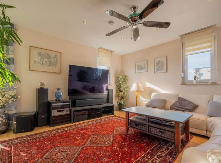 Zum Verkauf steht eine attraktive, ca. 93 m² große Attikawohnung im Obergeschoss eines gepflegten Mehrfamilienhauses aus dem Jahr 2012. Die Immobilie befindet sich in ruhiger Lage am Waldrand und nur wenige Minuten von der Berliner Stadtgrenze entfernt.
