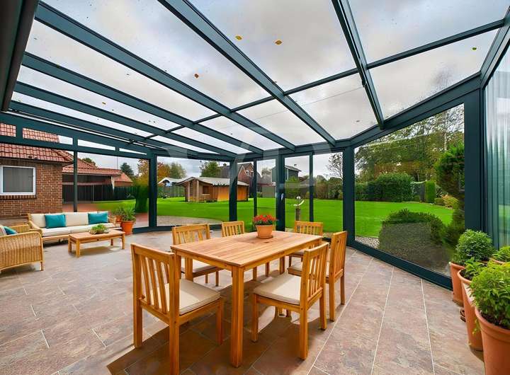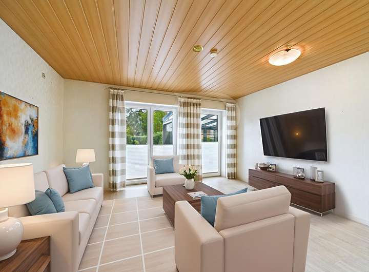 Weitere Ausstattungsdetails bieten hohen Alltagskomfort: Ein komplett eingezäunter, sonniger Garten in Südausrichtung, ein hochwertiges Holz-Gartenhaus (5 x 5 m) sowie ein Sommergarten erweitern an warmen Tagen die Wohnfläche ins Freie. Der großzügige Carport mit integrierten Deckenspots eignet sich auch für ein Wohnmobil oder Boot.