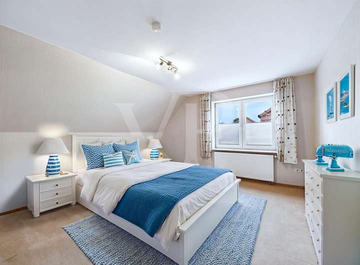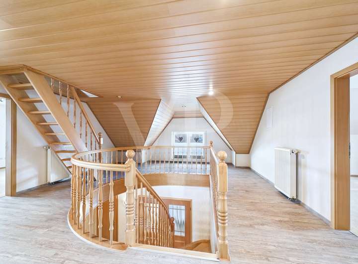 Mit insgesamt 9 Zimmern, darunter 6 Schlafzimmer und 2 großzügige, 2020 erneuerte Bäder mit bodengleichen, rollstuhlgerechten Duschen, bietet das Haus viel Raum für unterschiedlichste Wohnkonzepte – ideal sowohl für die große Familie, als Zweigenerationen-Haus als auch für Arbeiten und Wohnen unter einem Dach. Die moderne Elektroinstallation (teilweise erneuert), hochwertige Kunststofffenster (zum Teil dreifach verglast und abschließbar), solarbetriebene Dachfenster mit Regensensor im Dachgeschoss und flächendeckende Außenrollos unterstreichen den gehobenen Ausstattungsstandard.