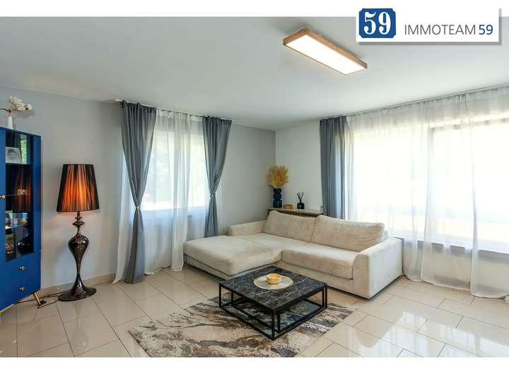 Die Erdgeschosswohnung ist ca. 84qm groß und begeistert mit einer geräumigen Wohnküche und einem modernen Bad mit bodengleicher Dusche sowie einem ebenfalls modernisierten Gäste-WC.