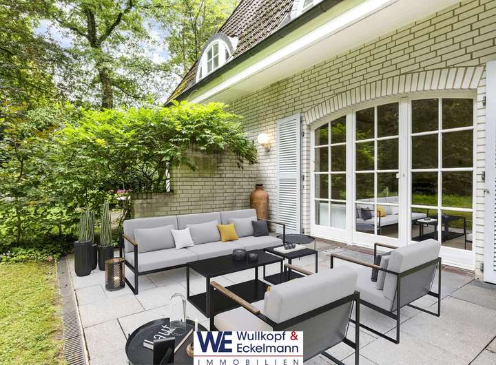 Die sonnige Süd-Ost-Terrasse und der weitläufige, parkähnliche Garten laden zum entspannten Frühstück im Freien, fröhlichen Grillabenden mit Freunden und unbeschwertem Spielen unter freiem Himmel ein – ein echtes Paradies für Genießer und Familienmenschen.
