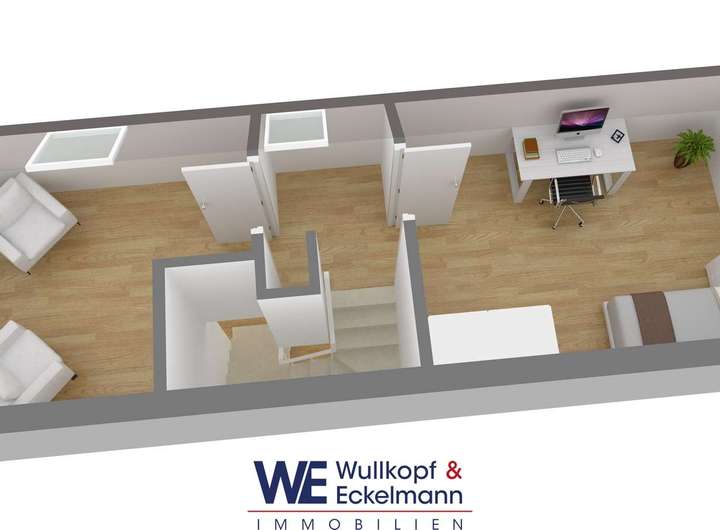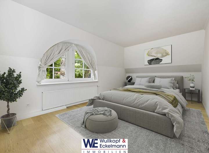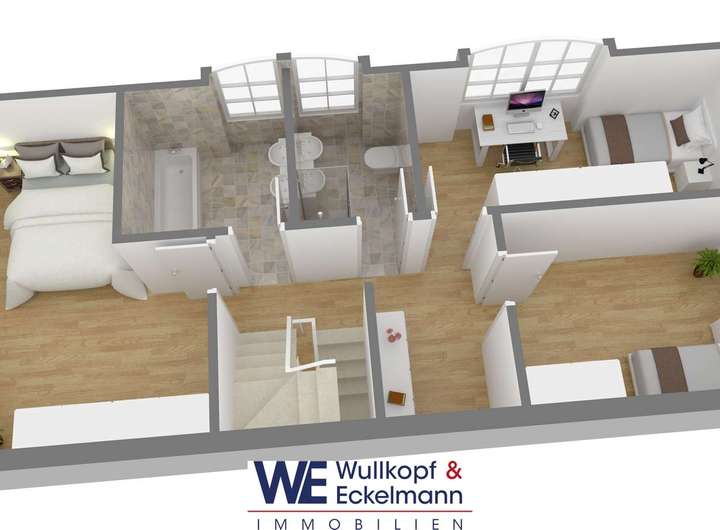 Über eine Treppe gelangen Sie in das Obergeschoss, wo sich drei individuell geschnittene Schlaf- bzw. Kinderzimmer sowie zwei Tageslichtbäder befinden.