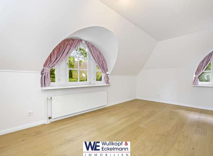 Das vollständig ausgebaute Dachgeschoss (wohnliche Nutzfläche von ca. 42 m²) bietet zwei weitere gemütliche Räume, die sich hervorragend als Gäste-, Arbeits- oder Rückzugszimmer eignen und dank großer Dachflächenfenster viel Licht erhalten.