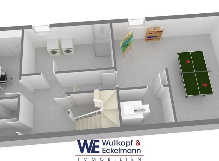 Abgerundet wird das Raumangebot durch das großzügige Kellergeschoss (ca. 62 m² Nutzfläche) mit großem Hobbyraum, separatem Büroraum sowie einem funktionalen Wasch-/Trockenraum mit eingebauter Dusche sowie einem Waschbecken – ideal für alle, die zusätzlichen Platz schätzen.