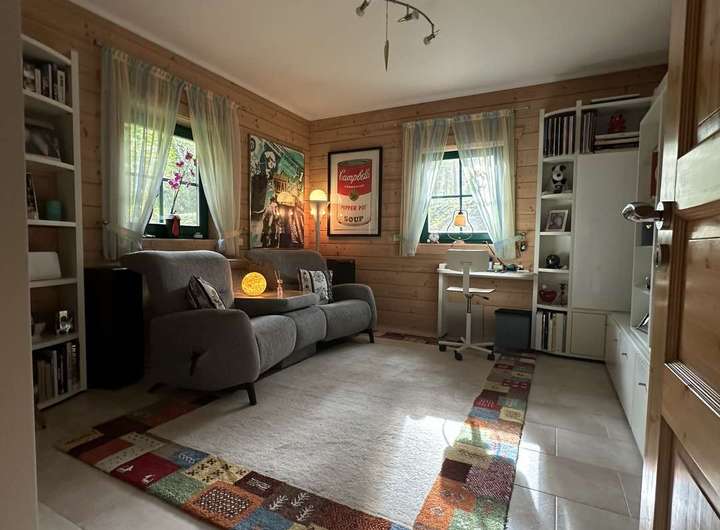 Ein besonderes Highlight ist der gemütliche Kamin, der an kühlen Abenden für eine warme und einladende Atmosphäre sorgt. Für Entspannung und Wellness steht der eigene Pool und die Sauna jederzeit zur Verfügung. Sicherheit bietet die moderne Alarmanlage, die das Haus rund um die Uhr bewacht.