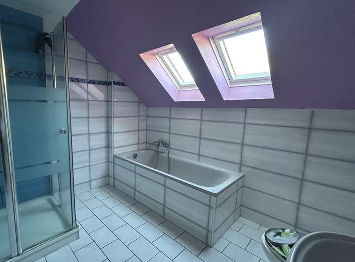 Das Dachgeschoss wurde zu Wohnzwecken ausgebaut und bietet zusätzliche Nutzfläche – ideal als Gäste-, Hobby- oder Arbeitsbereich.
