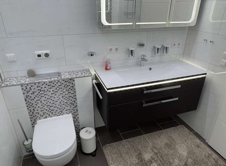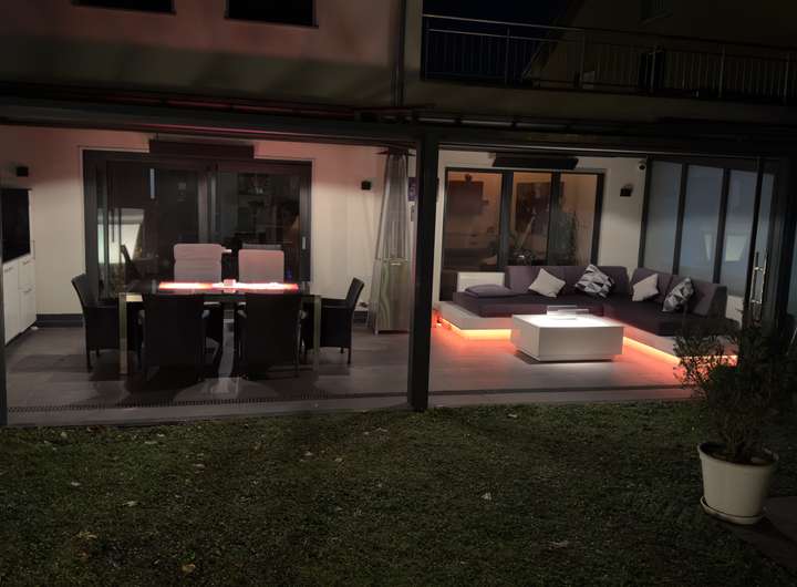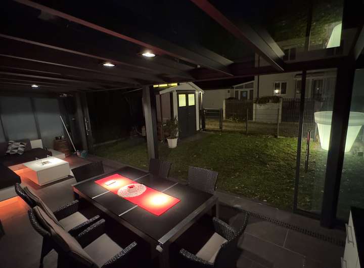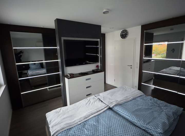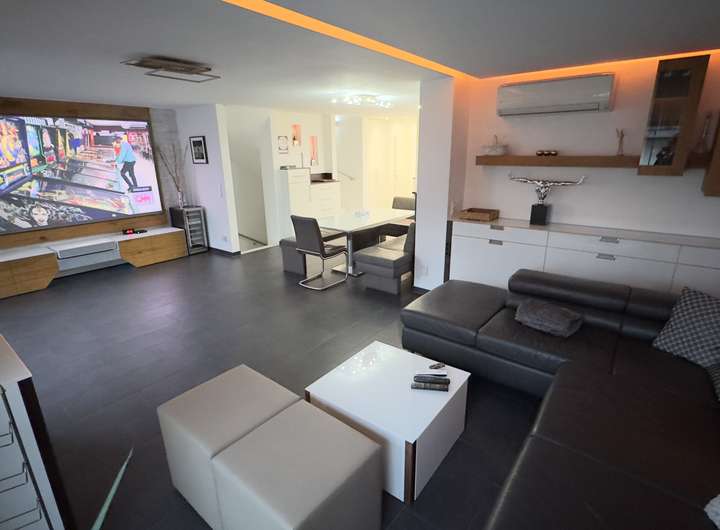 Hochwertige Ausstatung mit Marmor,Keramik,Alu,Einbaumöbel vom deutschen Schreiner,LED beleuchtungen,Fussbodenheizung im EG,gespachtelte Rafaello Wände,Kühlschrank auf der beheizten Terase ,neuster Biemer für Kino Gefühl usw.
