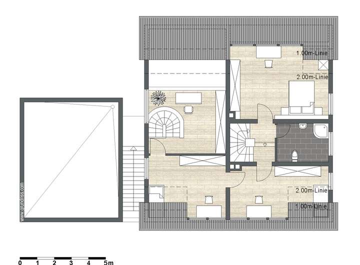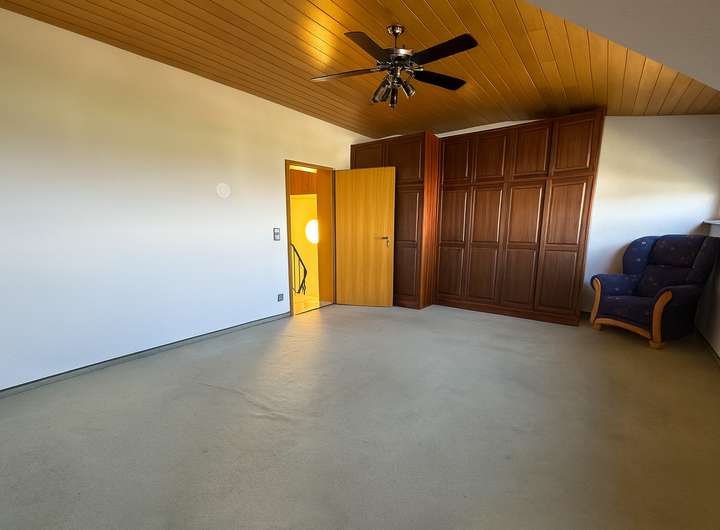 Insgesamt vier Schlafzimmer: ein Schlafzimmer im Erdgeschoss mit Bad, drei Schlafzimmer im Dachgeschoss mit Masterbad