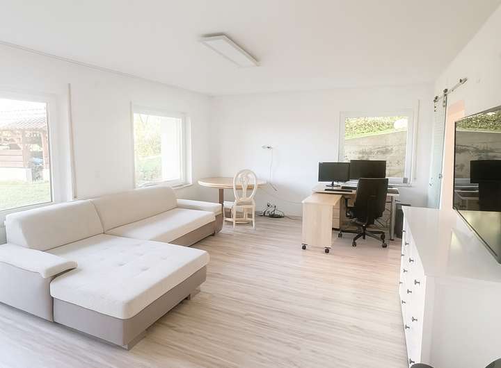 Separater Zugang mit direktem Gartenzugang. Perfekt als eigenständige Wohnung, Büro oder Praxis – vielfältige Nutzung möglich.