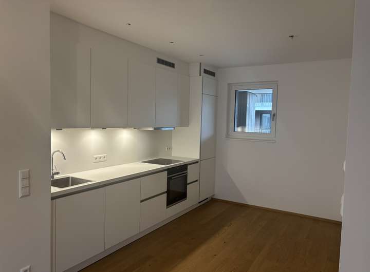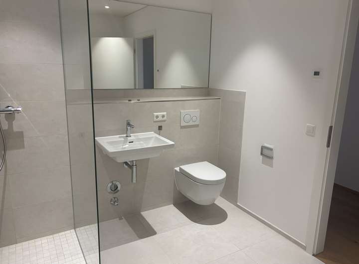 Die helle und großzügige 2 Zimmer-Wohnung im ersten Obergeschoss verfügt über eine tolle Ausstattung. Die Wohnräume sowie der Eingangsbereich sind mit einem hochwertigen Parkettboden versehen. Der helle Wohnbereich verfügt über Bodentiefe Fenster. Die anthrazitfarbenen Boden- und Wandfliesen, der Handtuchheizkörper sowie die modernen Sanitärgegenstände runden das Bild des großzügigen Tageslichtbades mit Dusche ab. Im Bad ist ebenfalls Platz für Waschmaschine und Trockner vorgesehen. Für ein besonders angenehmes Raumklima sorgt die vorhandene Fußbodenheizung. Sie verleiht der Wohnung in der kalten Jahreszeit eine angenehme Raumtemperatur. Die elektrischen Rollläden an den Fenstern sorgen für die Privatsphäre.