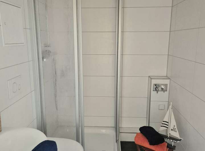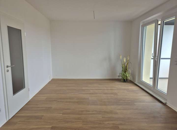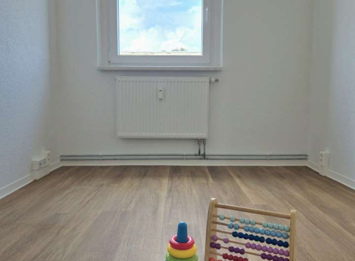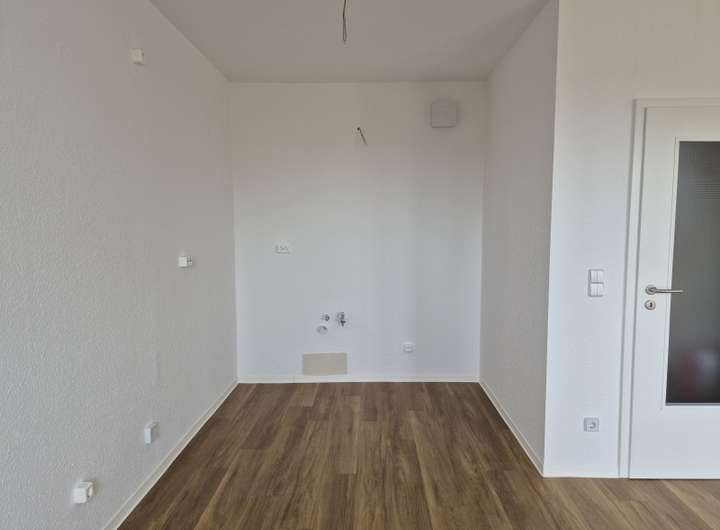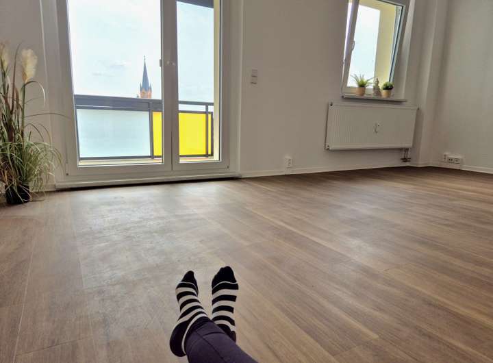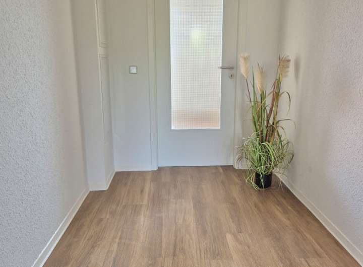 Die Wohnung wurde kürzlich komplett renoviert, d.h. die Elektrik, die Bodenbeläge, die Zimmertüren, die Tapeten wurden erneuert. Auf den Fußböden wurde ein Designbelag (PVC-Planke) in Holzoptik verlegt. Das Bad ist mit einer Dusche ausgestattet und im modernen Design gefliest.