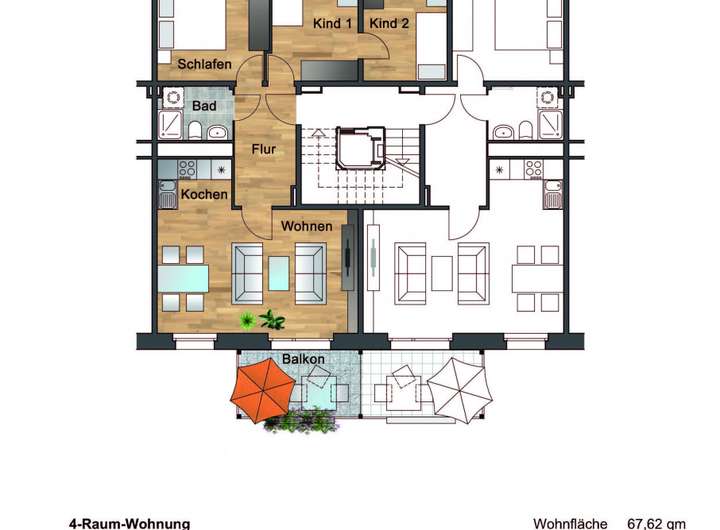 Die neuen Balkone sind mit einer Grundfläche von fast 7 Quadratmetern (ca. 3,5 * 2,0 m) sehr geräumig und laden zum Verweilen ein.