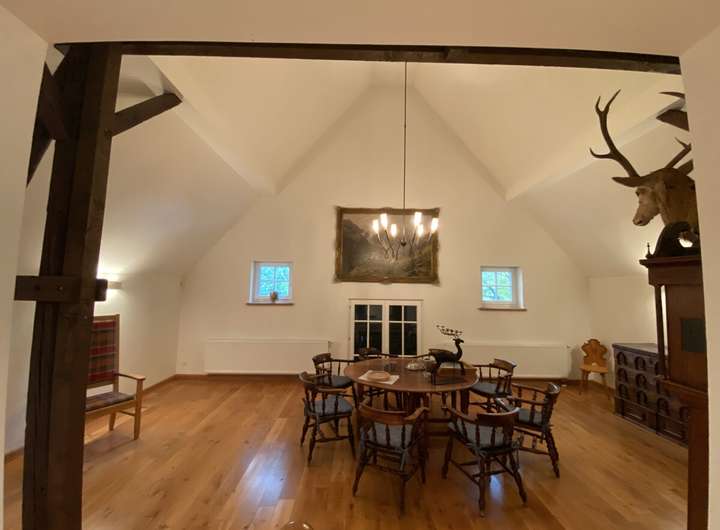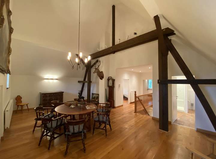 Sie suchen ein außergewöhnliches Miethaus für sich und ihre kleine Familie? Dann ziehen Sie doch einfach in ein ehemaliges Jagdhaus, welches über einen offenen Kamin, hohe Decken mit offenen Balken im Dachgeschoss, Steinböden und alte Gemäuer verfügt.