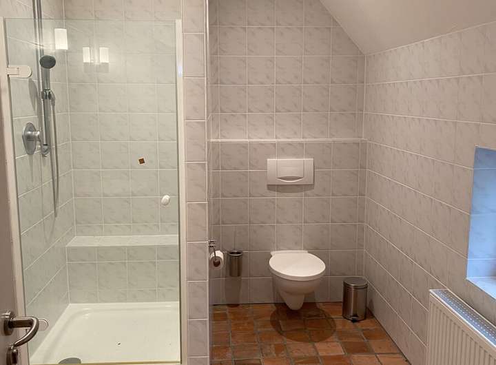 Obergeschoss: ein ca. 43 m² großes Wohnzimmer, 1 Kinderzimmer, 1 ca. 28m² großes Schlafzimmer und 1 Badezimmer mit Dusche und Fenster