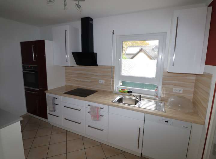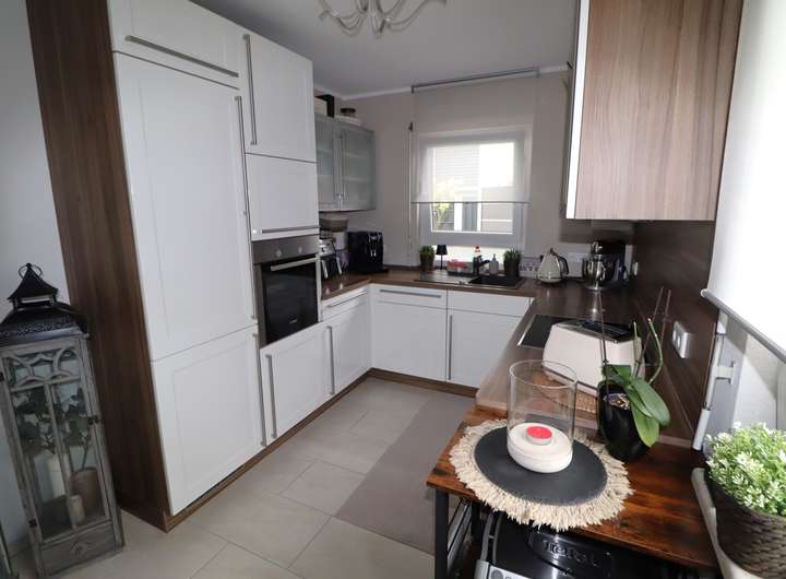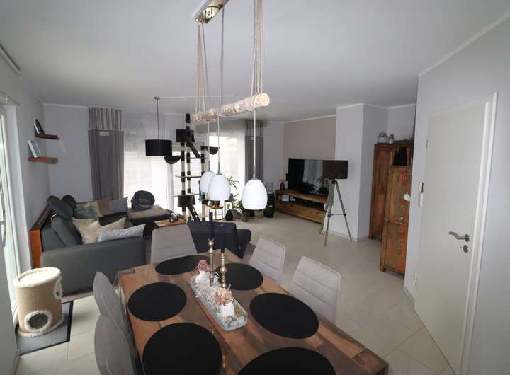 Die Hauptwohnung verfügt über eine Wohnfläche von ca. 117 qm und überzeugt mit einer Küche in offener Bauweise mit integrierter, moderner Einbauküche. Ein geräumiges und lichtdurchflutetes Wohn-/Esszimmer ist das Herzstück des Familienlebens.