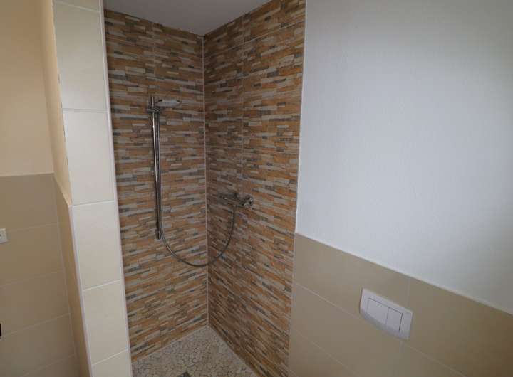 Diese Wohnung begeistert mit einem offen gestalteten Wohn-/Esszimmer mit direktem Zugang auf die schöne Terrasse und in den Garten. Die separate Küche ist mit einer modernen Einbauküche ausgestattet, von hier aus gelangen Sie in einen kleinen Abstellraum. Des Weiteren überzeugt die Einliegerwohnung mit einem geräumigen Schlafzimmer und einem Tageslicht-Badezimmer mit bodentiefer Dusche und WC.
