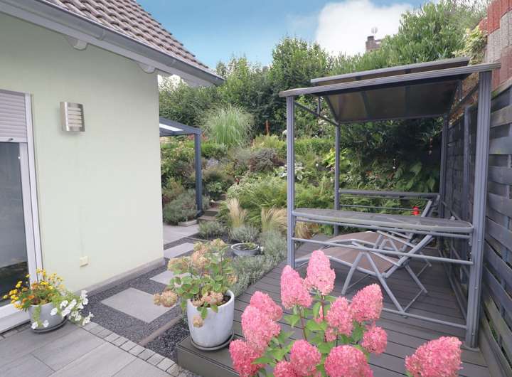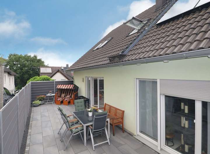 Von hier aus haben Sie einen direkten Zugang auf die große Sonnenterrasse und in den schönen großen Garten. Hier haben Ihre Kinder genug Platz sich zu entfalten, während Sie die Sonnenstunden in vollen Zügen genießen können.