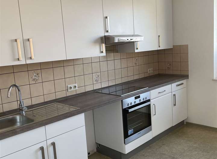 Die 3-Zimmer-Wohnung ist mit einer Einbauküche ausgestattet. Das Badezimmer ist mit einem Wannenbad und mit einem Waschmaschinenanschluss ausgestattet. Das Wohn- und Schlafzimmer sowie der Flur sind mit Parkettboden ausgestattet. Auf dem Flur befindet sich ein großzügiger