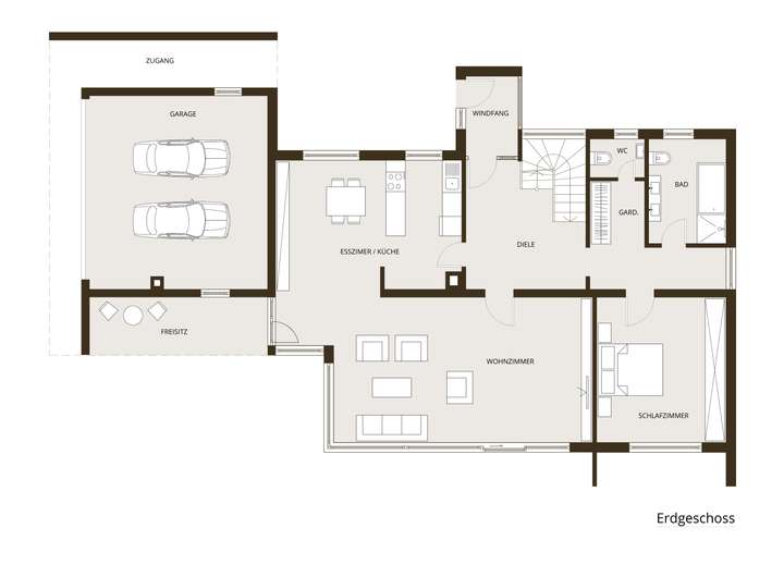 - Vier Schlafzimmer (optional erweiterbar auf fünf)