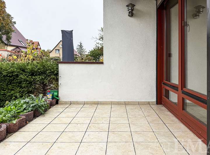 - Westterrasse und angelegter Garten