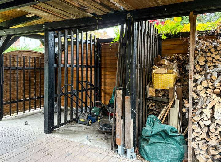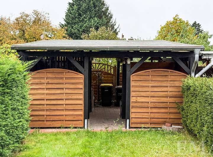 Im hinteren Teil des Gartens befindet sich ein Unterstand aus Holz für Lagerzwecke sowie für Kaminholz. Die Nutzfläche im Unterstand beträgt ca. 20 m².