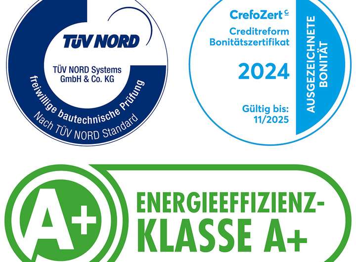 Ihr Haus erstellen wir gemäß aktuellem GEG mit Energieeffizienzklasse A+ oder als von der KFW-Bank förderfähiges und klimafreundliches Wohngebäude.