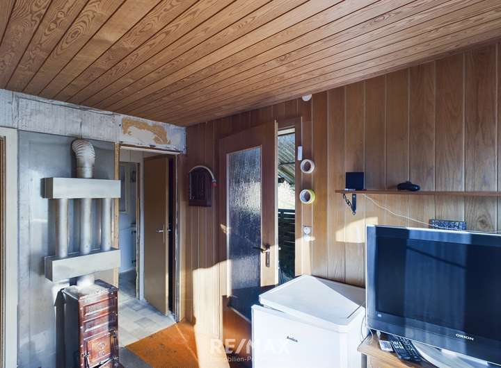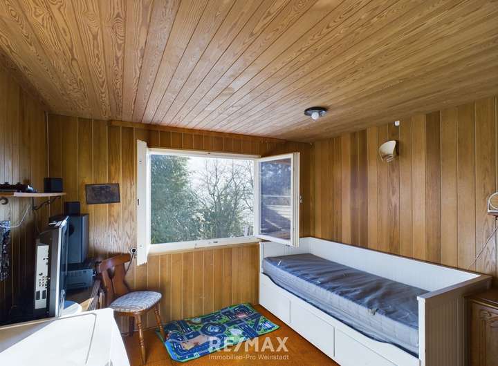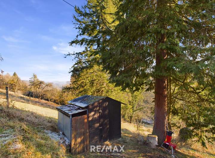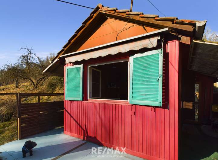 813m² Grundstück eingezäunt, genehmigtem Wochenendhaus (21 m²): Das "Häusle" verfügt über ein Wohnzimmer mit Kaminofen, ein separates Zimmer (Schlafzimmer) eine kleine Küche und eine Terrasse – ideal, um gemütliche Stunden zu verbringen.