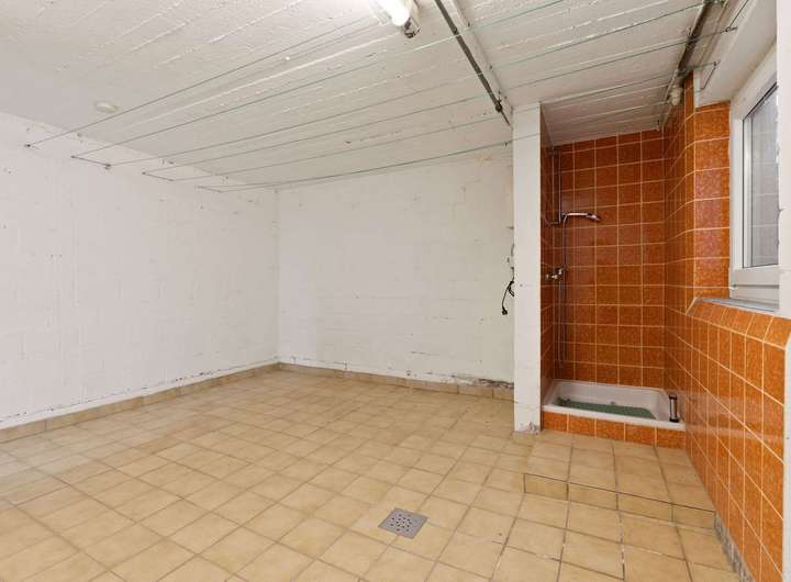 Zusätzlichen Raum bietet das Kellergeschoss mit zwei großzügigen Abstellräumen, von denen einer mit einer Dusche ausgestattet ist. Ein direkter Zugang in den Garten erweitert die Nutzungsmöglichkeiten deutlich – etwa für ein Hobbyraum oder Fitnessbereich. Ergänzt wird der Keller durch einen separaten Heizungsraum (Öl-Heizung) sowie einen Vorraum.