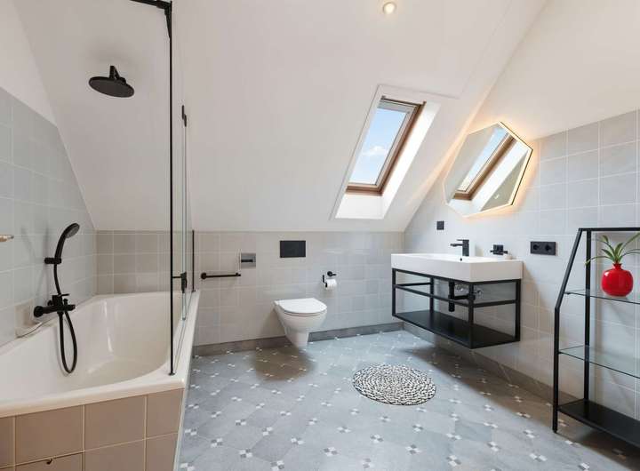 Das Obergeschoss verfügt über drei gut geschnittene Schlafzimmer, von denen eines über einen praktischen Ankleideraum oder Büro als Durchgangszimmer verfügt. Ein weiteres Badezimmer mit Badewanne steht ebenfalls zur Verfügung.