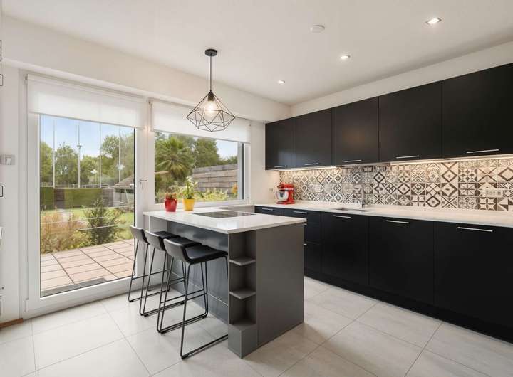 Erdgeschoss: Küche mit Gartenzugang, separater Essbereich, großzügiges Wohnzimmer, Badezimmer mit Dusche