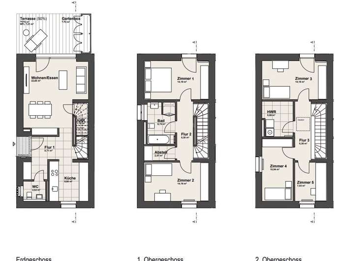 Sie legen Wert auf Qualität, hochwertige Materialien und beste Verarbeitung? Bei uns bekommen Sie eine Immobilie, die einfach klasse ist. Unsere Miethäuser sind mit Weitzer-Parkett mit Eichendielen und hochwertigen Natursteinfliesen ausgestattet. Die Duschen im Bad sind für einen barrierefreien Zugang bodengleich gefliest. Im Erdgeschoss sorgt eine Fußbodenheizung für angenehme Wärme, im Bad wärmt ein Wandheizkörper Ihre Handtücher vor. Wände und Decken sind mit Malervlies tapeziert – dies schafft eine glatte und gleichmäßige Oberfläche. Bereits in dem Reihenhaus verbaut sind elektrisch betriebene Textil-Rollos, die im Sommer für Sonnenschutz sorgen.