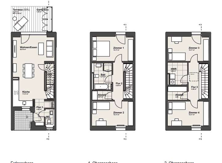 Sie legen Wert auf Qualität, hochwertige Materialien und beste Verarbeitung? Bei uns bekommen Sie eine Immobilie, die einfach klasse ist. Unsere Miethäuser sind mit Weitzer-Parkett mit Eichendielen und hochwertigen Natursteinfliesen ausgestattet. Die Duschen im Bad sind für einen barrierefreien Zugang bodengleich gefliest. Im Erdgeschoss sorgt eine Fußbodenheizung für angenehme Wärme, im Bad wärmt ein Wandheizkörper Ihre Handtücher vor. Wände und Decken sind mit Malervlies tapeziert – dies schafft eine glatte und gleichmäßige Oberfläche. Bereits in dem Reihenhaus verbaut sind elektrisch betriebene Textil-Rollos, die im Sommer für Sonnenschutz sorgen.