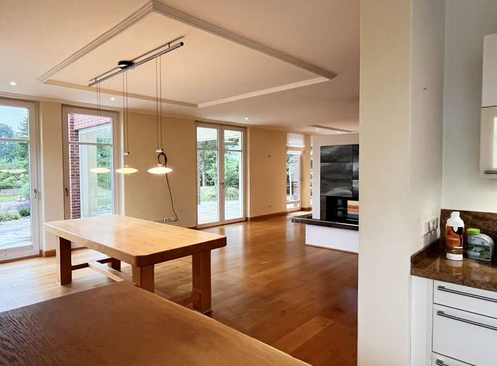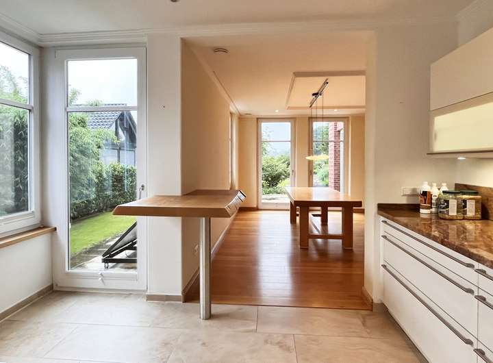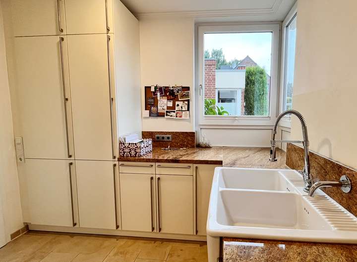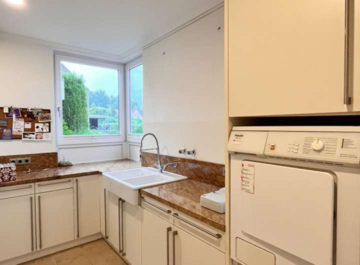 Die hochwertige Einbauküche lässt keine Wünsche offen und dank angrenzender Speisekammer und Hauswirtschaftsraum mit zusätzlicher Wirtschaftsküche bleibt hier alles aufgeräumt und praktisch organisiert. Ein Traum für Familien, die Wert auf Funktionalität legen.