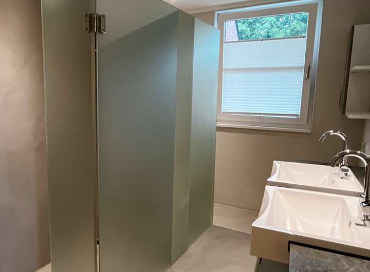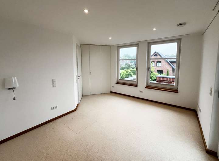Im Erdgeschoss befindet sich zudem ein großzügiger Raum mit direktem Zugang in den Garten. Dieses eignet sich perfekt als Gästezimmer, Homeoffice oder als separates Kinderzimmer. Das angrenzende Duschbad sorgt für zusätzlichen Komfort, besonders bei Besuch oder größeren Familien.