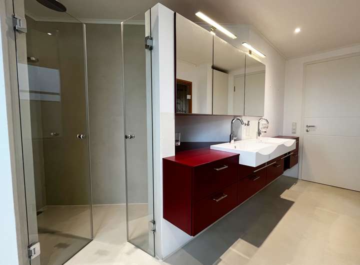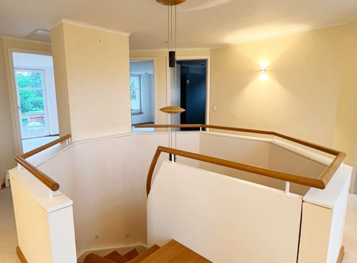 Im Obergeschoss erwarten Sie vier gemütliche Schlafzimmer, diese bieten viel Platz für Eltern, Kinder und individuelle Rückzugsorte. Zwei geschmackvoll gestaltete Badezimmer, eines davon mit eigener Sauna, sorgen für entspannte Morgenroutinen und Wellnessmomente nach einem langen Tag. Drei der Schlafzimmer bieten zudem Zugang zu Balkonen (hier fehlt noch die entsprechende Brüstung), die sich wunderbar zum Lüften oder kurzen Sonnenpausen eignen.
