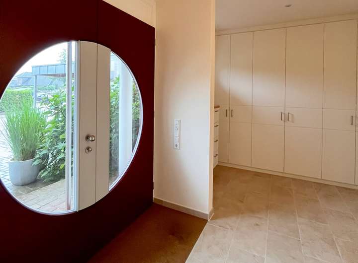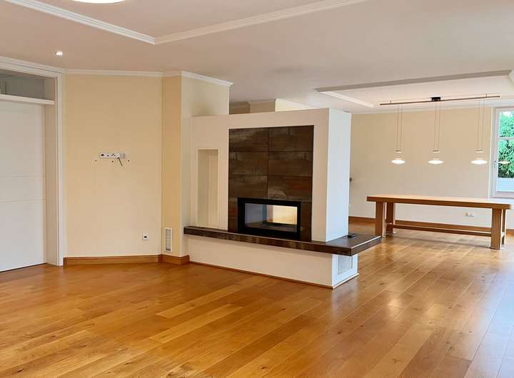 Bereits beim Eintreten empfängt Sie ein großzügiger Flur mit praktischen, hochwertigen Einbauschränken, ideal zum Verstauen von Jacken, Schuhen und Schulranzen. Der anschließende, offen gestaltete Wohn- und Essbereich bildet das Herzstück des Hauses: Hier kommt die Familie zusammen, ob beim Abendessen, Spielen oder gemütlichen Kaminabenden. Der wassergeführte Kamin sorgt dabei nicht nur für wohlige Wärme, sondern auch für eine besonders gemütliche Atmosphäre.