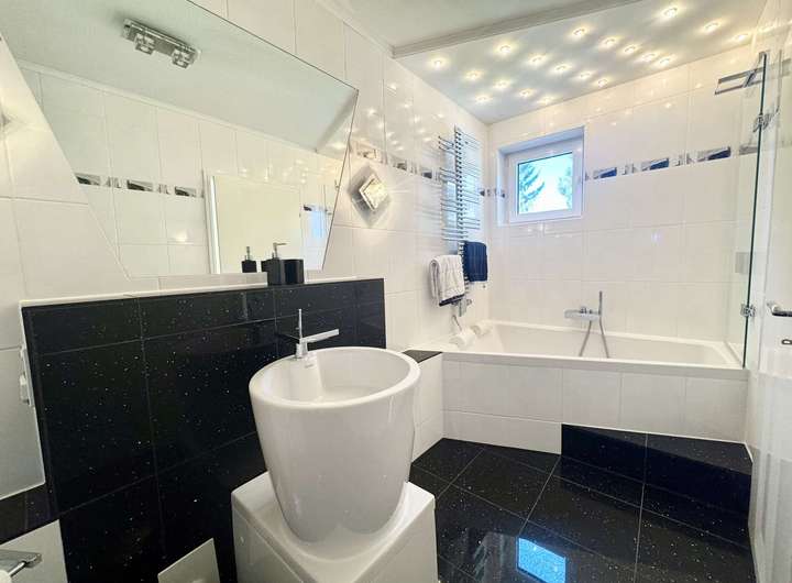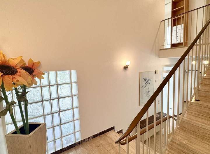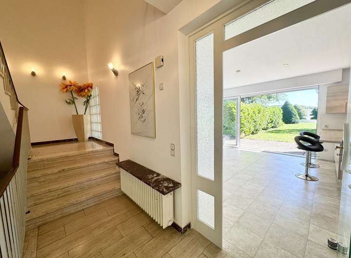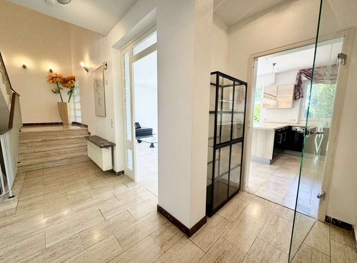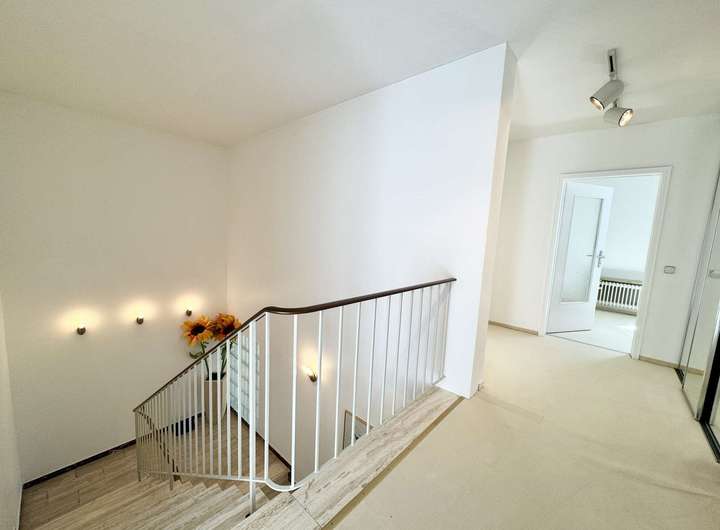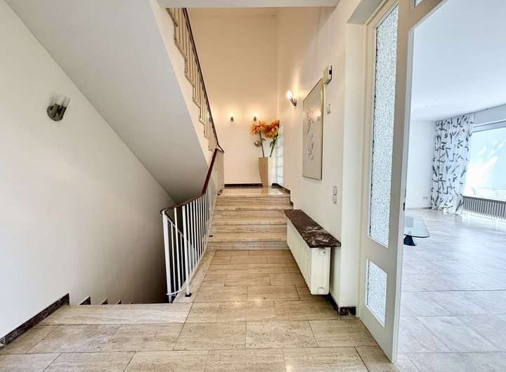 In derselben Straße wird eine exklusive Unternehmervilla mit umfangreicher Ausstattung (u. a. Pool, Wintergarten, Schwimmteich, Luxusinterieur) angeboten. Dieses Reihenhaus teilt die attraktive Lage und das großzügige Grundstücksumfeld, bietet jedoch eine dezente, solide Grundausstattung – ideal für Käufer, die auf Substanz und Lage setzen, aber ihren eigenen Stil umsetzen möchten.