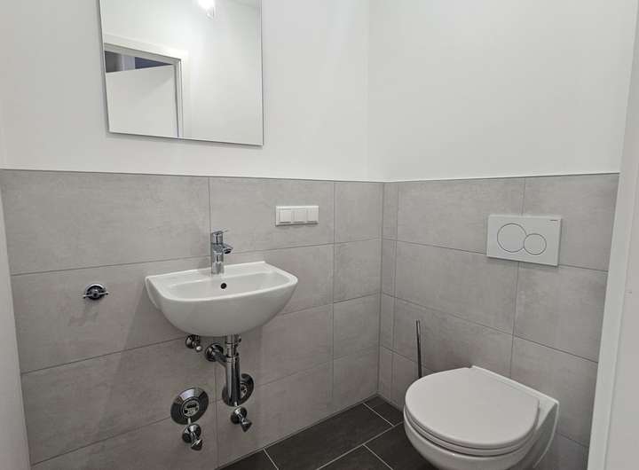 Die oberen Etagen bieten mehrere flexibel nutzbare Räume – ideal als Schlafzimmer, Kinderzimmer oder Arbeitszimmer. Insgesamt verfügt das Haus über zwei voll ausgestattete Badezimmer, die jeweils mit modernen Sanitärobjekten wie bodengleicher Duschen und stilvollen Fliesen ausgestattet sind.