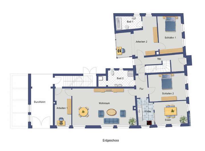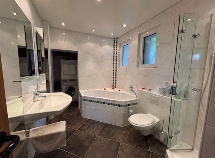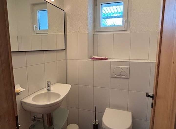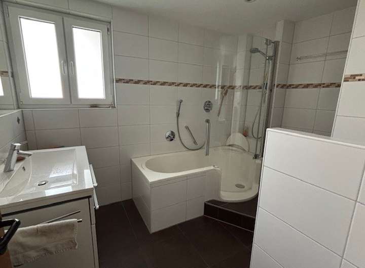 Im Erdgeschoss befindet sich eine geräumige 3-Zimmerwohnung mit modernem Bad und eingerichteter Küche.