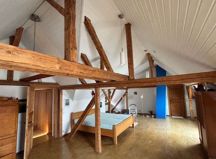 Angrenzend gibt es eine sehr schöne große Maisonette-Wohnung mit Innentreppe zum ausgebauten Dachboden. Erleben Sie hier Ruhe und Ausblicke in alle Richtungen .