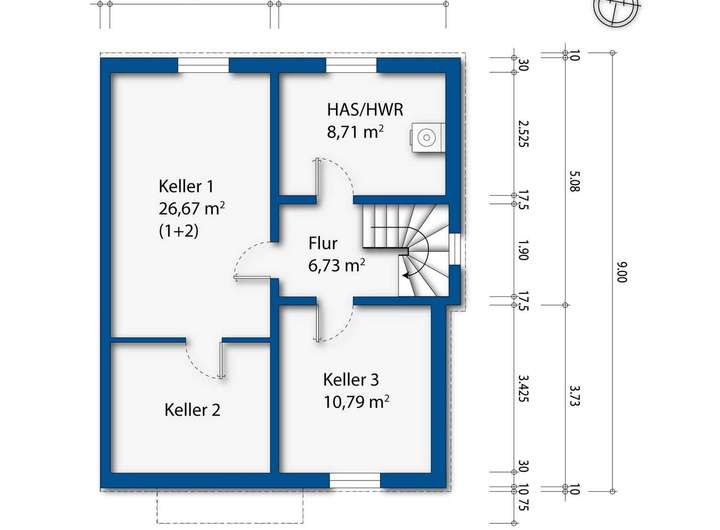 Genügend Platz für Hobbys und Stauraum finden Sie im Keller, der eine angenehme Deckenhöhe von 2,30 m hat.