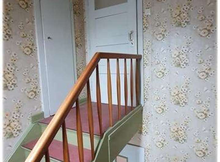 Im 1. Obergeschoss befindet sich eine 2-3-Zimmerwohnung mit Küche und Badezimmer. Diese Räumlichkeiten bieten dank einer durchgehenden Deckenhöhe (keine Dachschrägen) maximalen Raumkomfort und Stauraum. Die Elektrik wurde hier 1997 erneuert. Die Wohnung wird derzeit mit Strom-Nachtspeicheröfen beheizt, benötigt jedoch eine umfassende Modernisierung.
