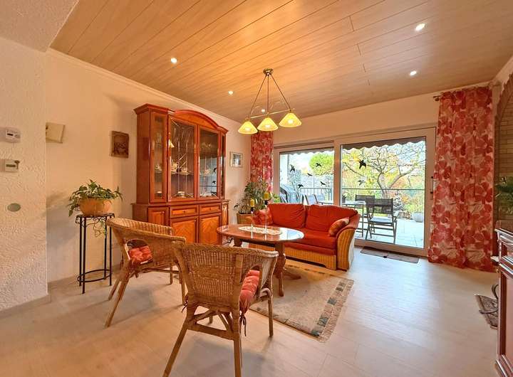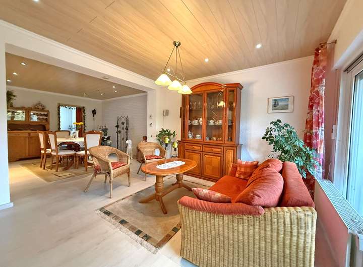 bildet das großzügige Wohn- und Esszimmer (ca. 32 m²) mit direktem