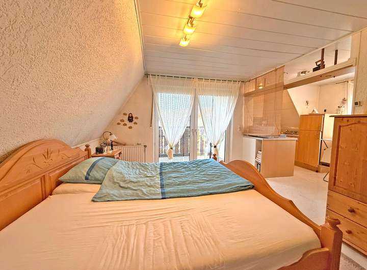 Im Obergeschoss stehen ein weiteres Zimmer sowie ein großes Wohn- und